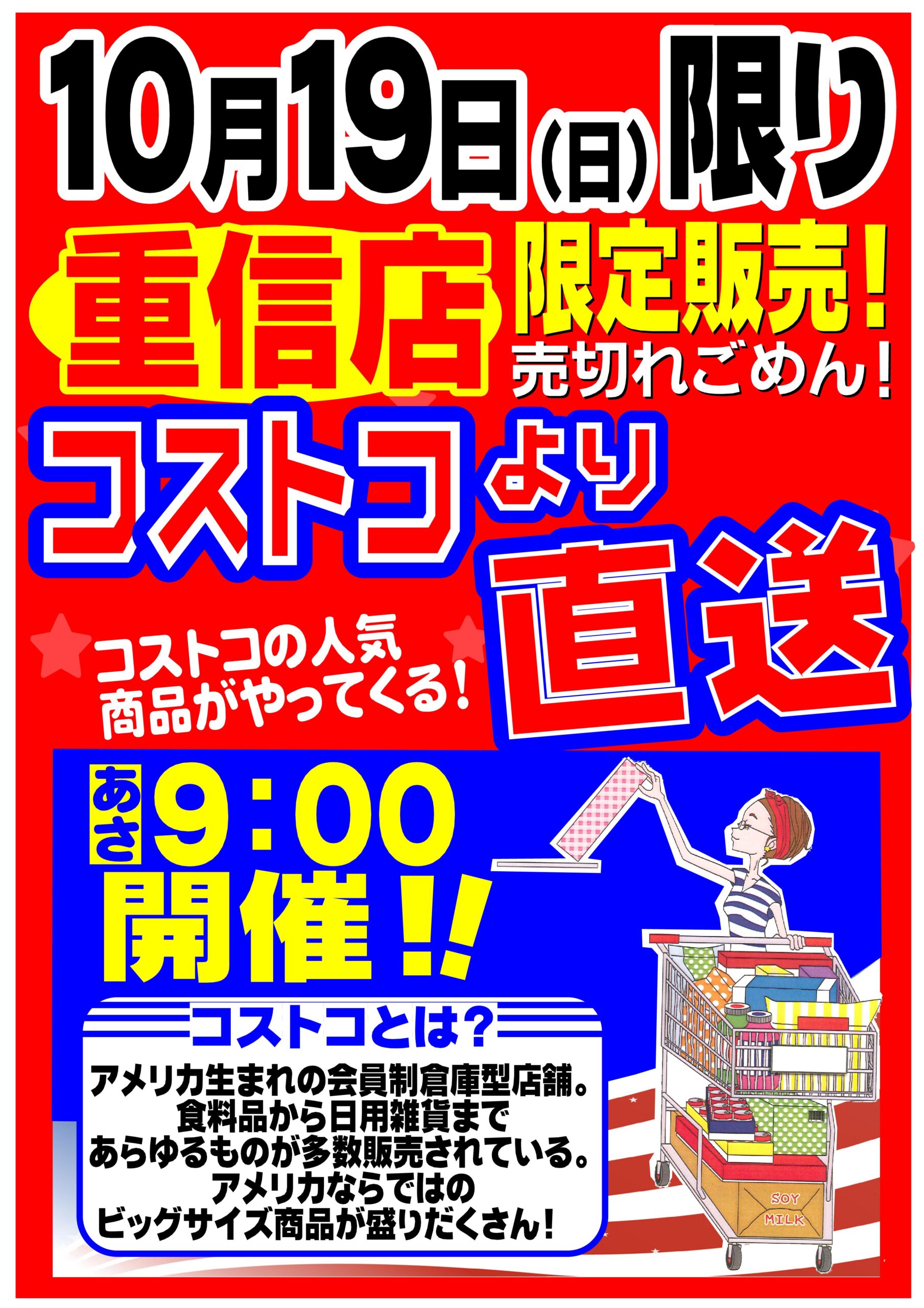 10月19日(日)限り、セブンスター重信店にてコストコより直送した商品を販売いたします。
