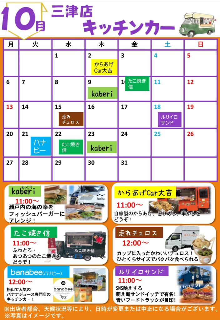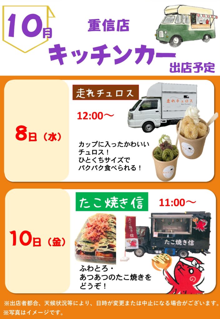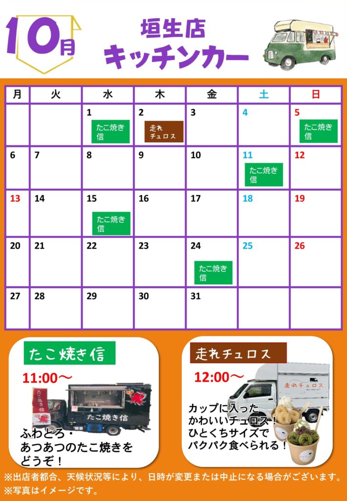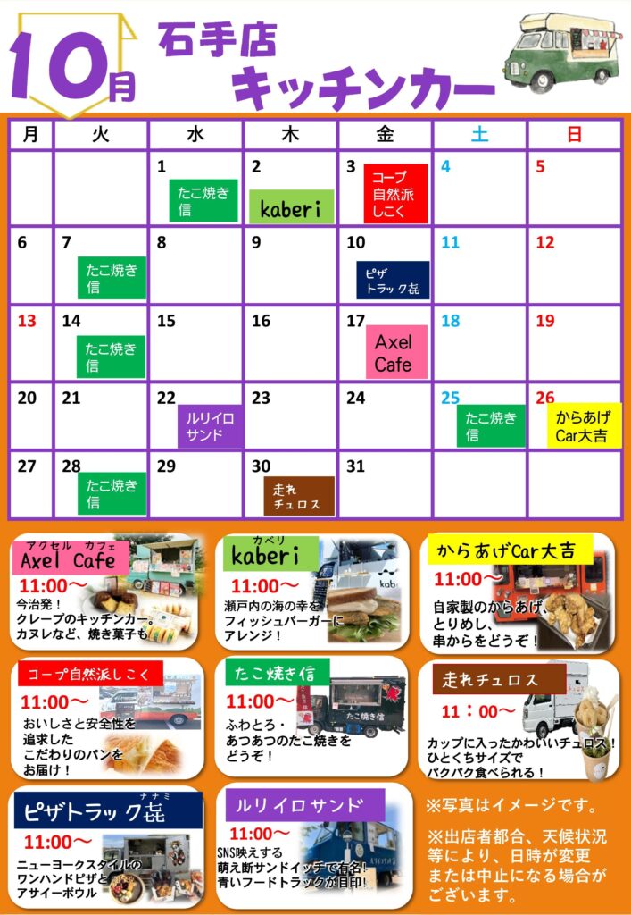 10月キッチンカー出店予定