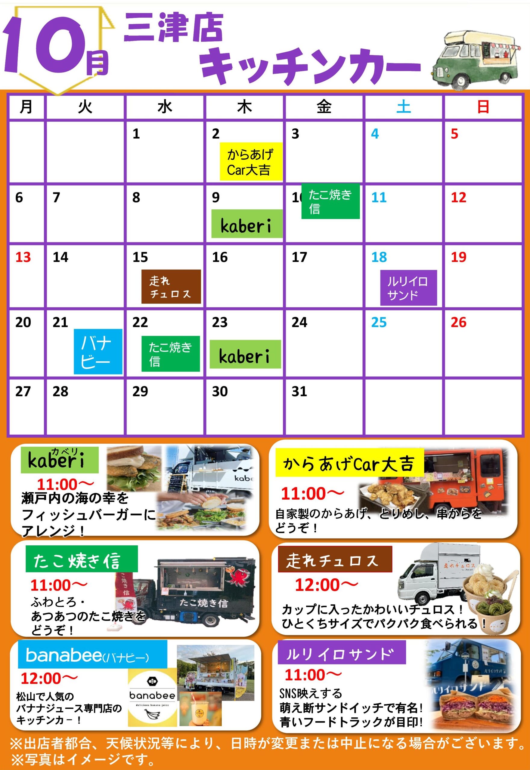 > 10月キッチンカー出店予定