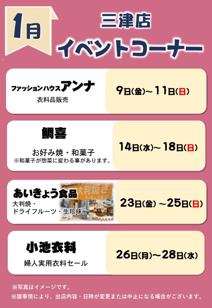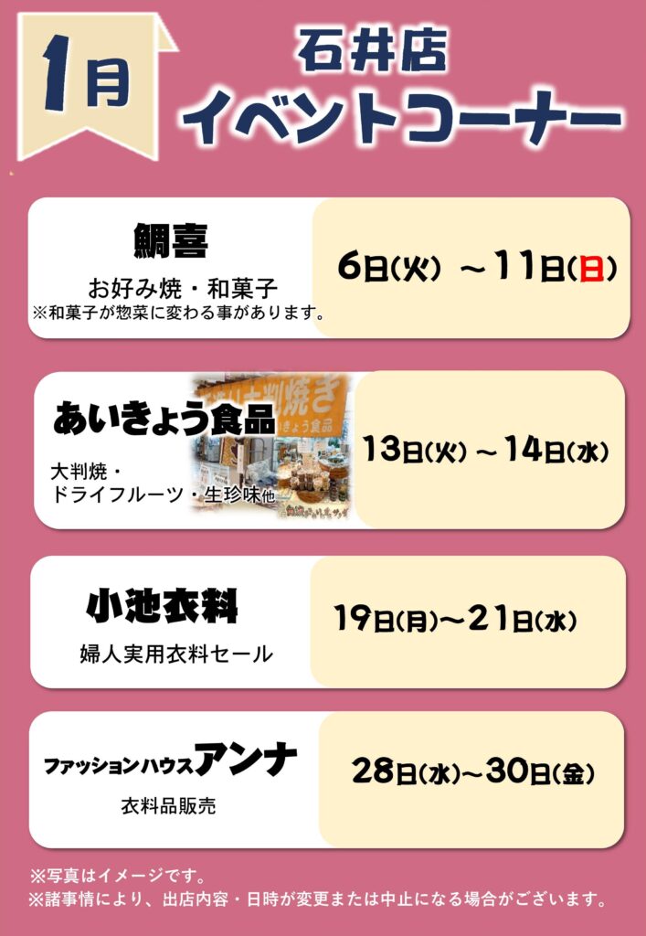 1月イベントコーナー予定