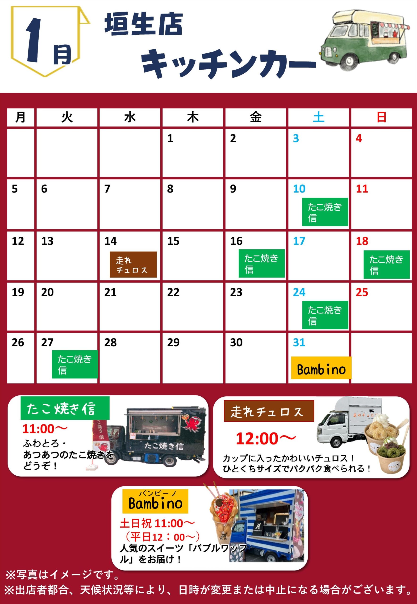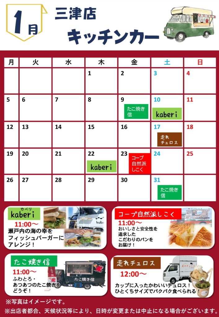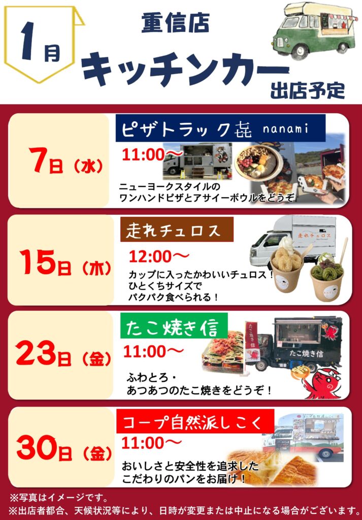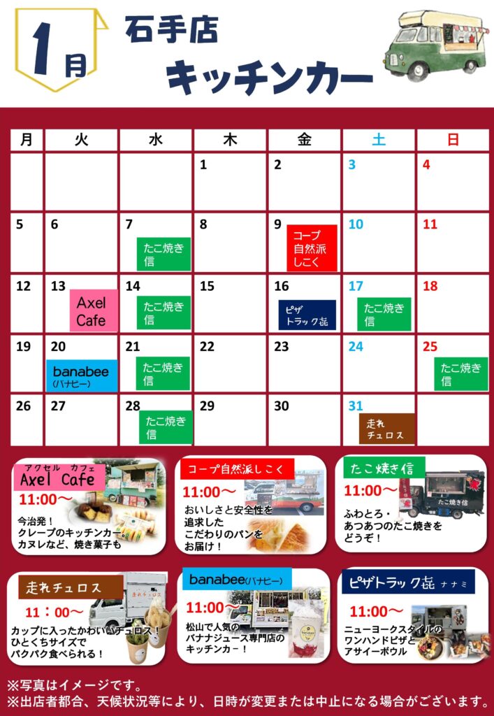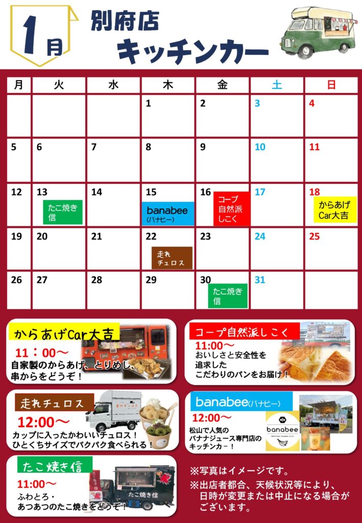 1月キッチンカー出店予定