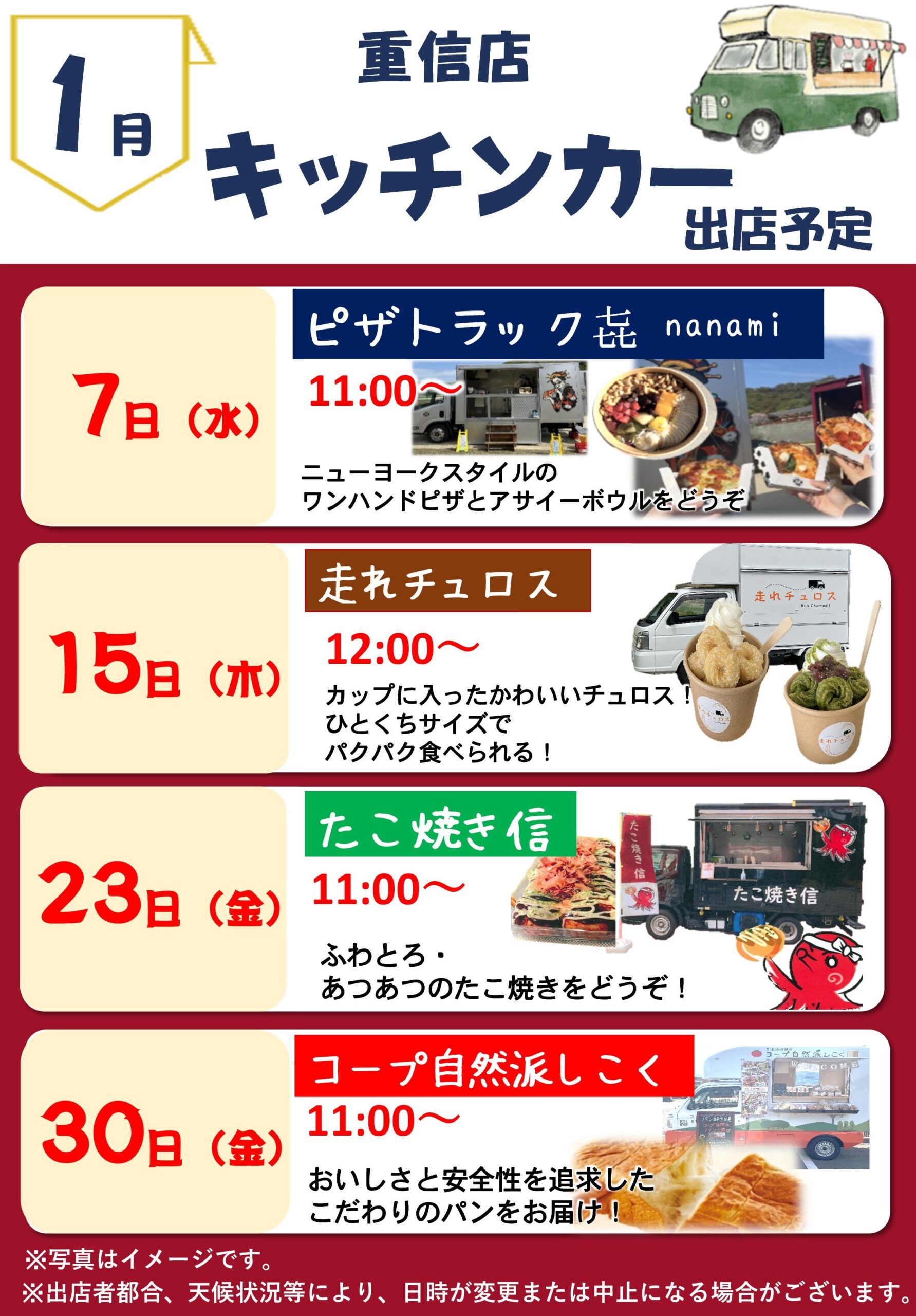 > 1月キッチンカー出店予定
