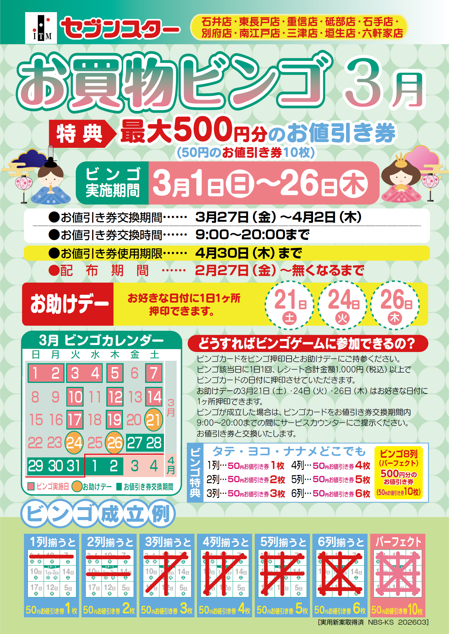 3月はお買物ビンゴを実施します。