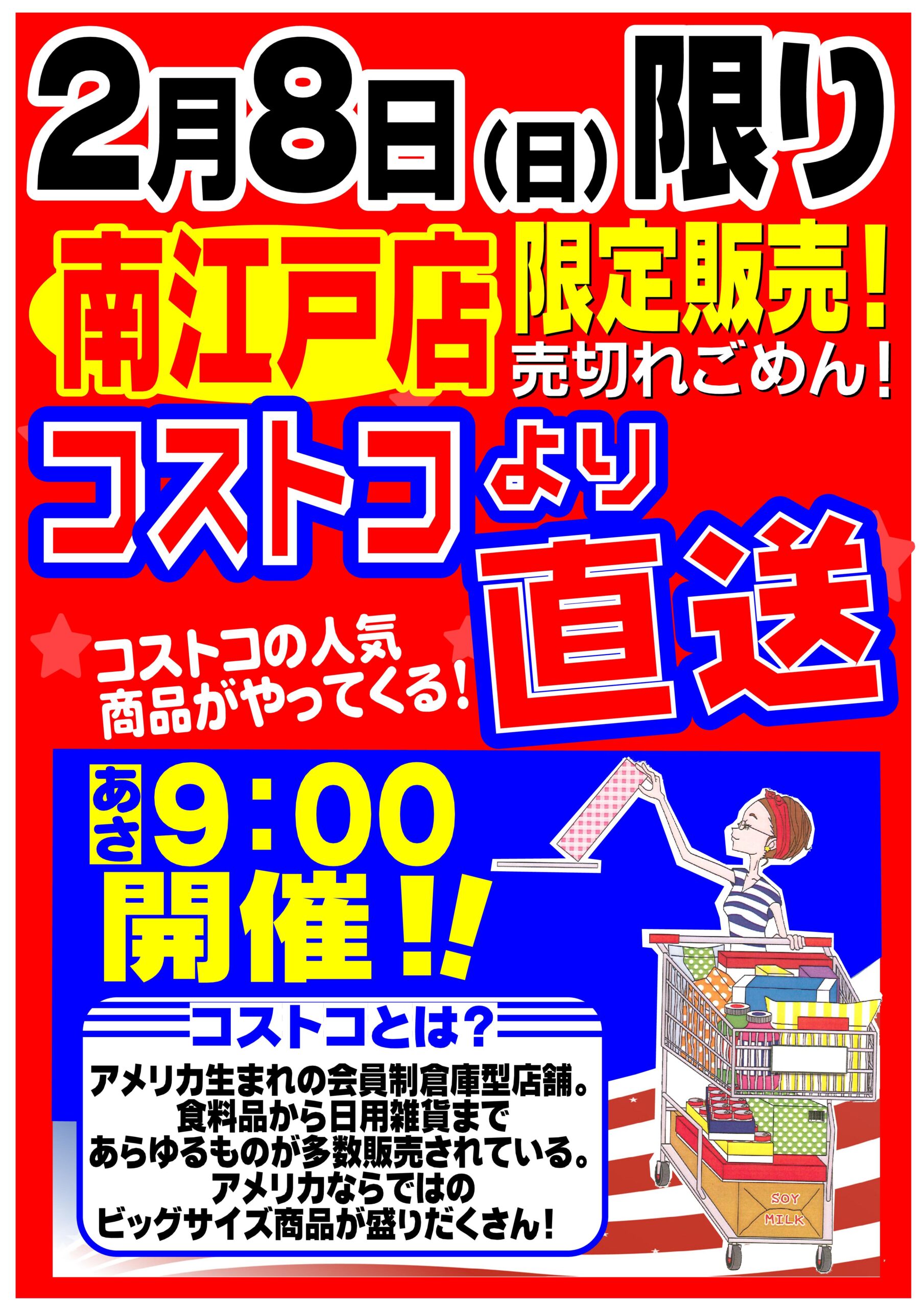 2月8日(日)限り、セブンスター南江戸店にてコストコより直送した商品を販売いたします。