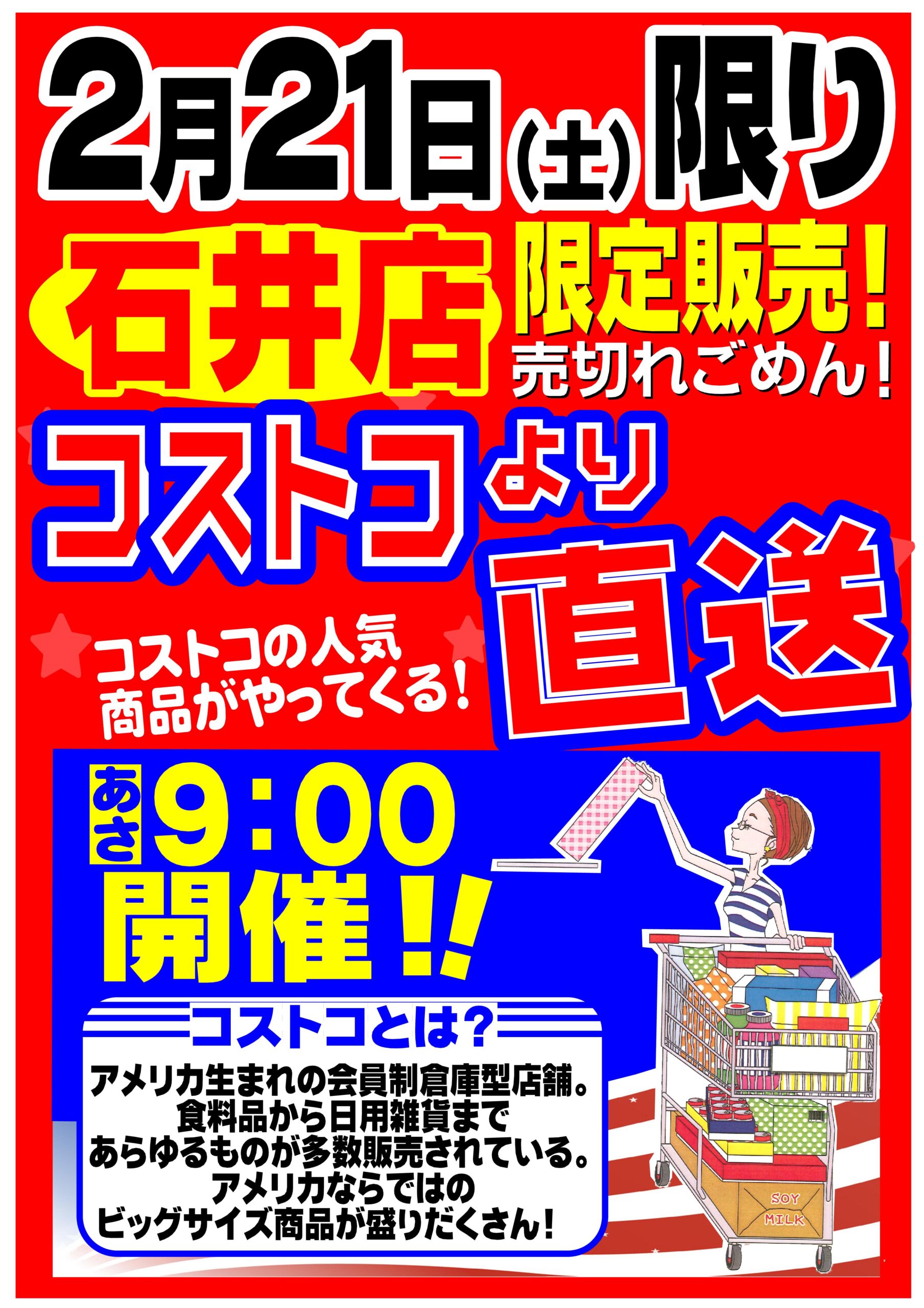 2月21日(土)限り、セブンスター石井店にてコストコより直送した商品を販売いたします。