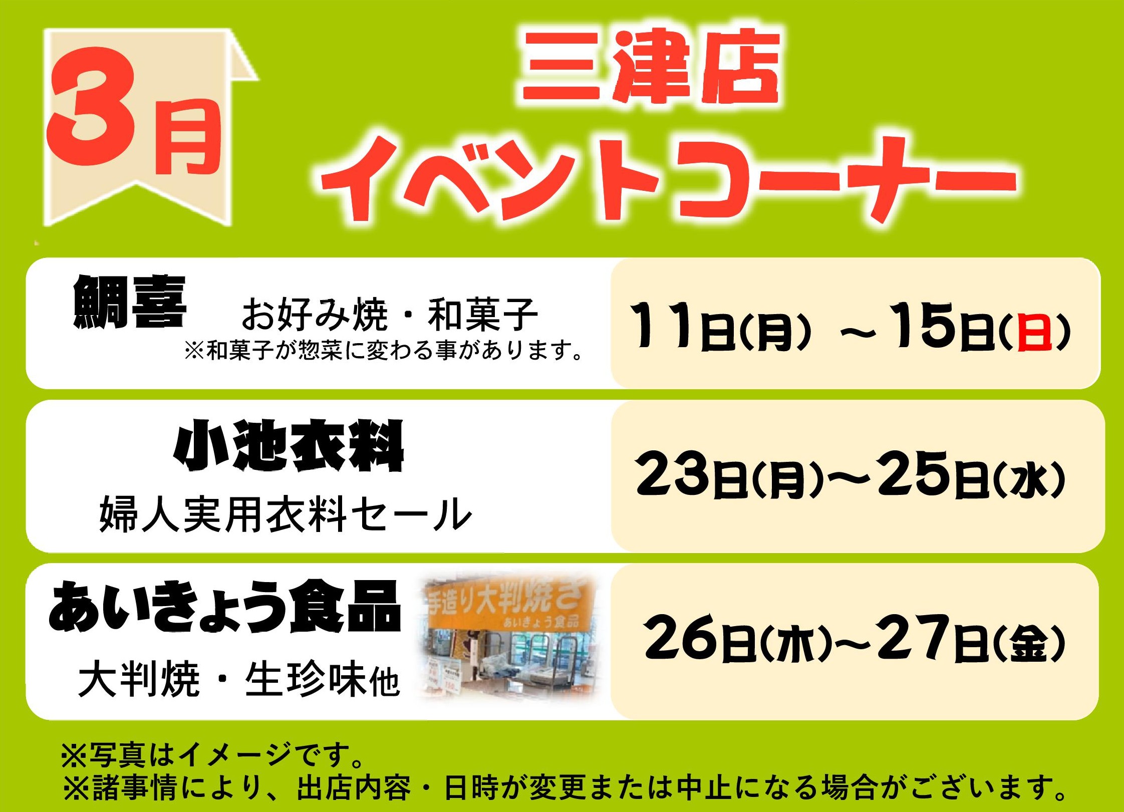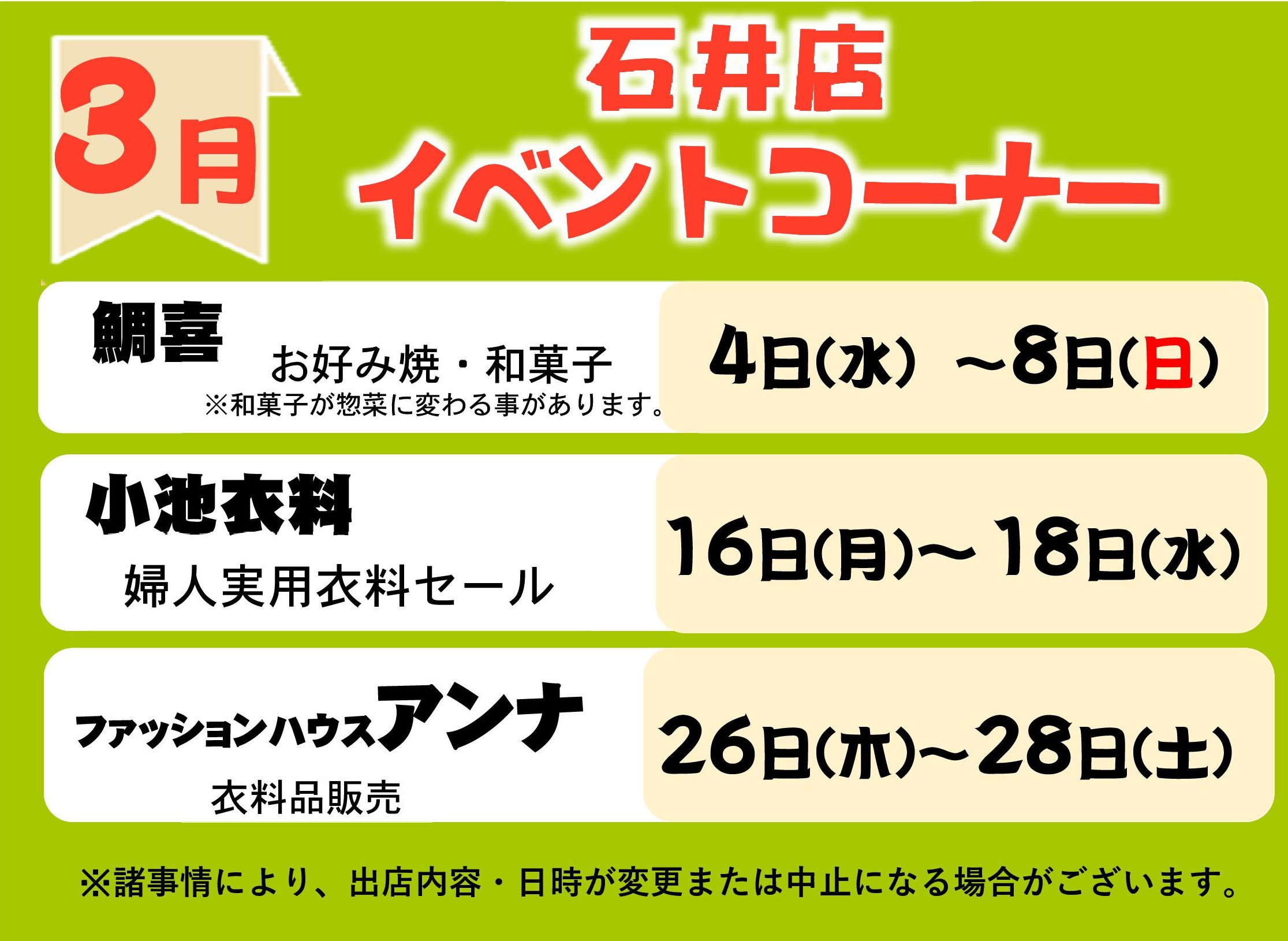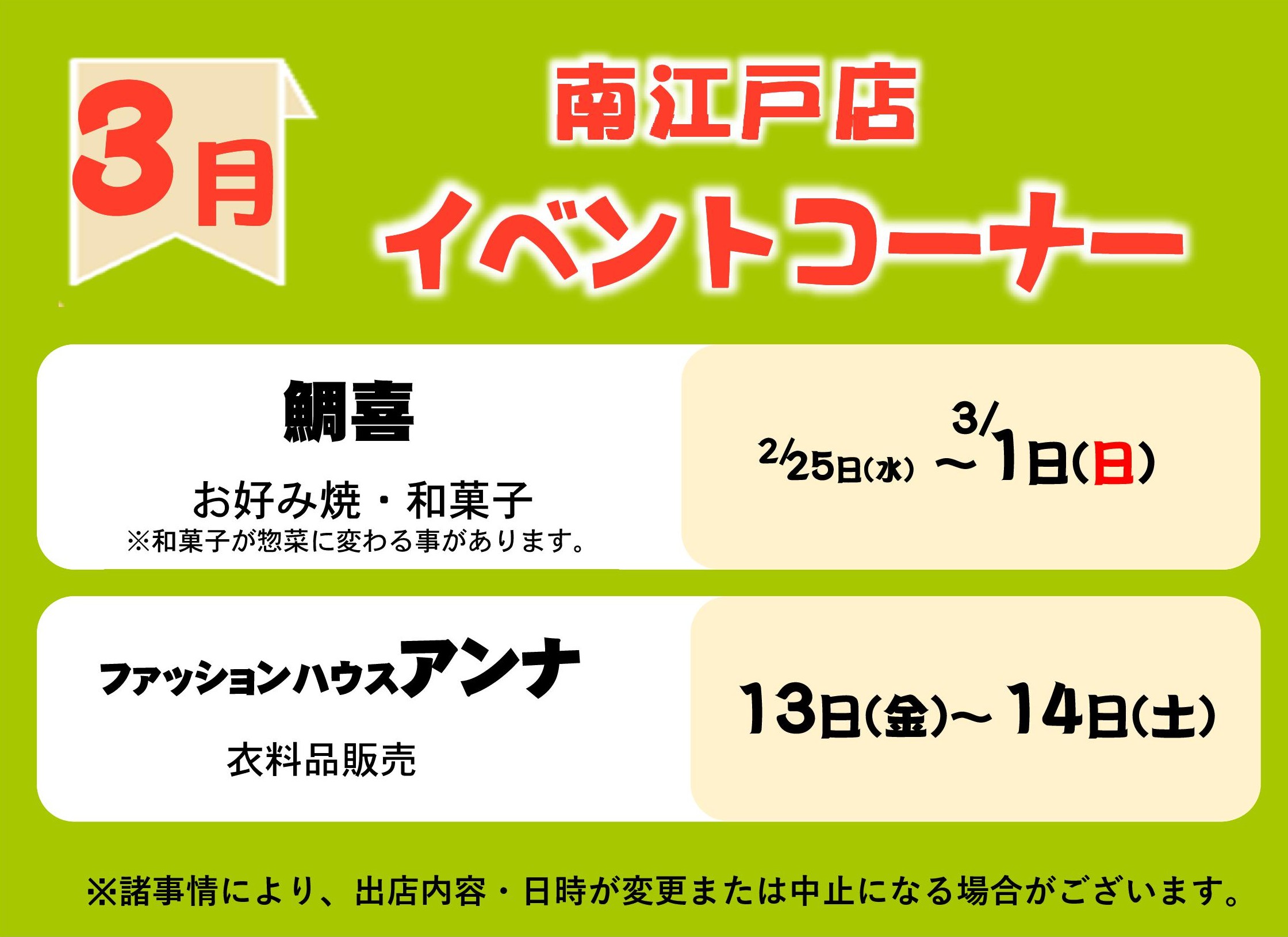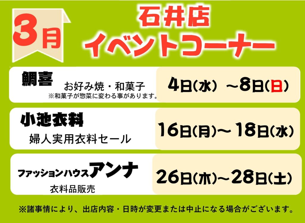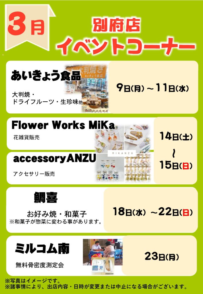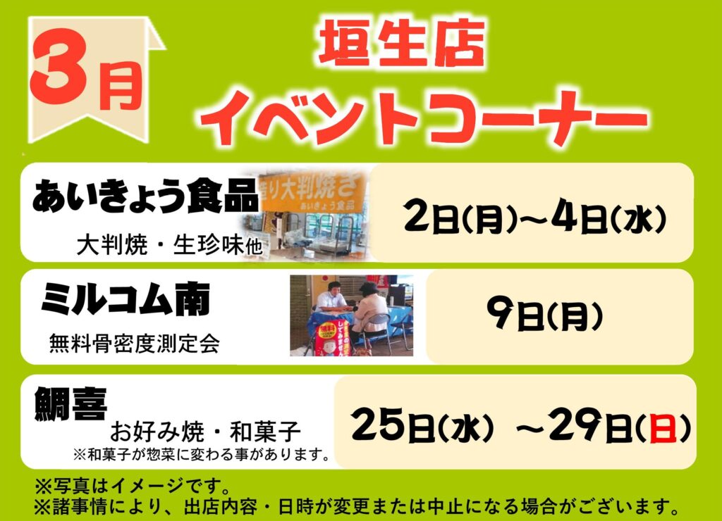 > 3月イベントコーナー予定