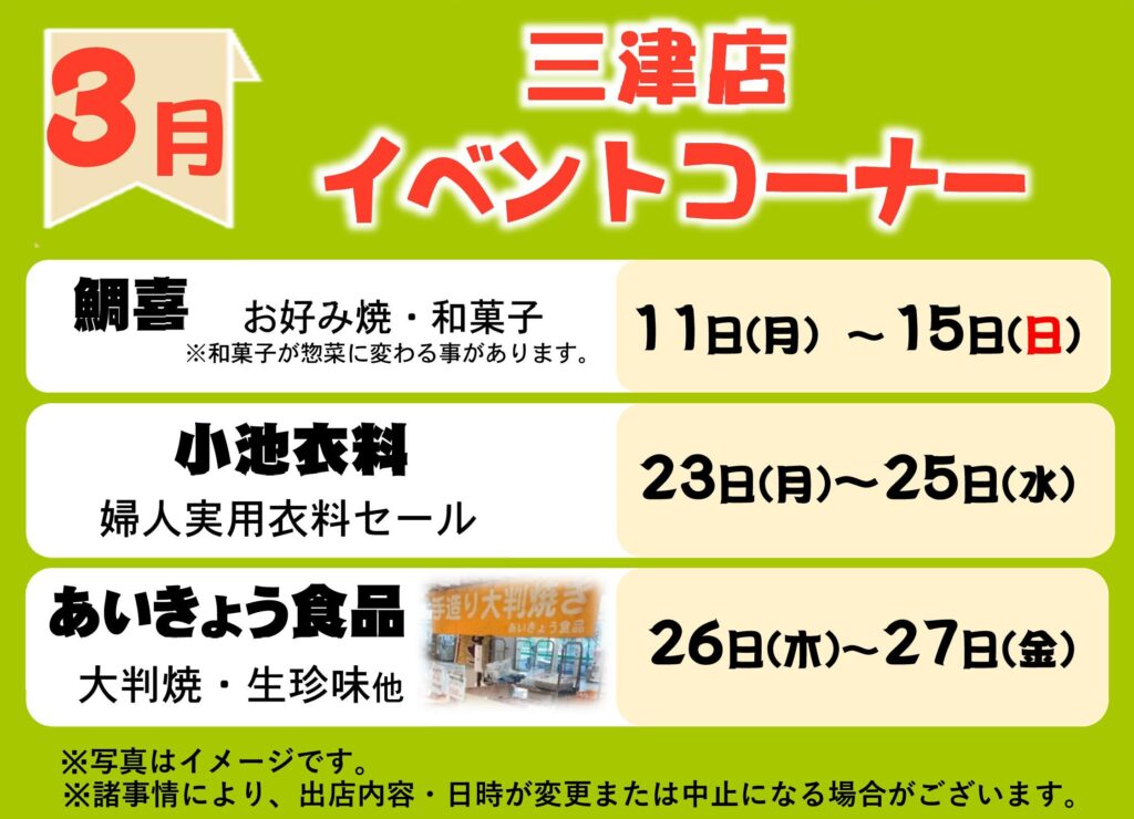 3月イベントコーナー予定